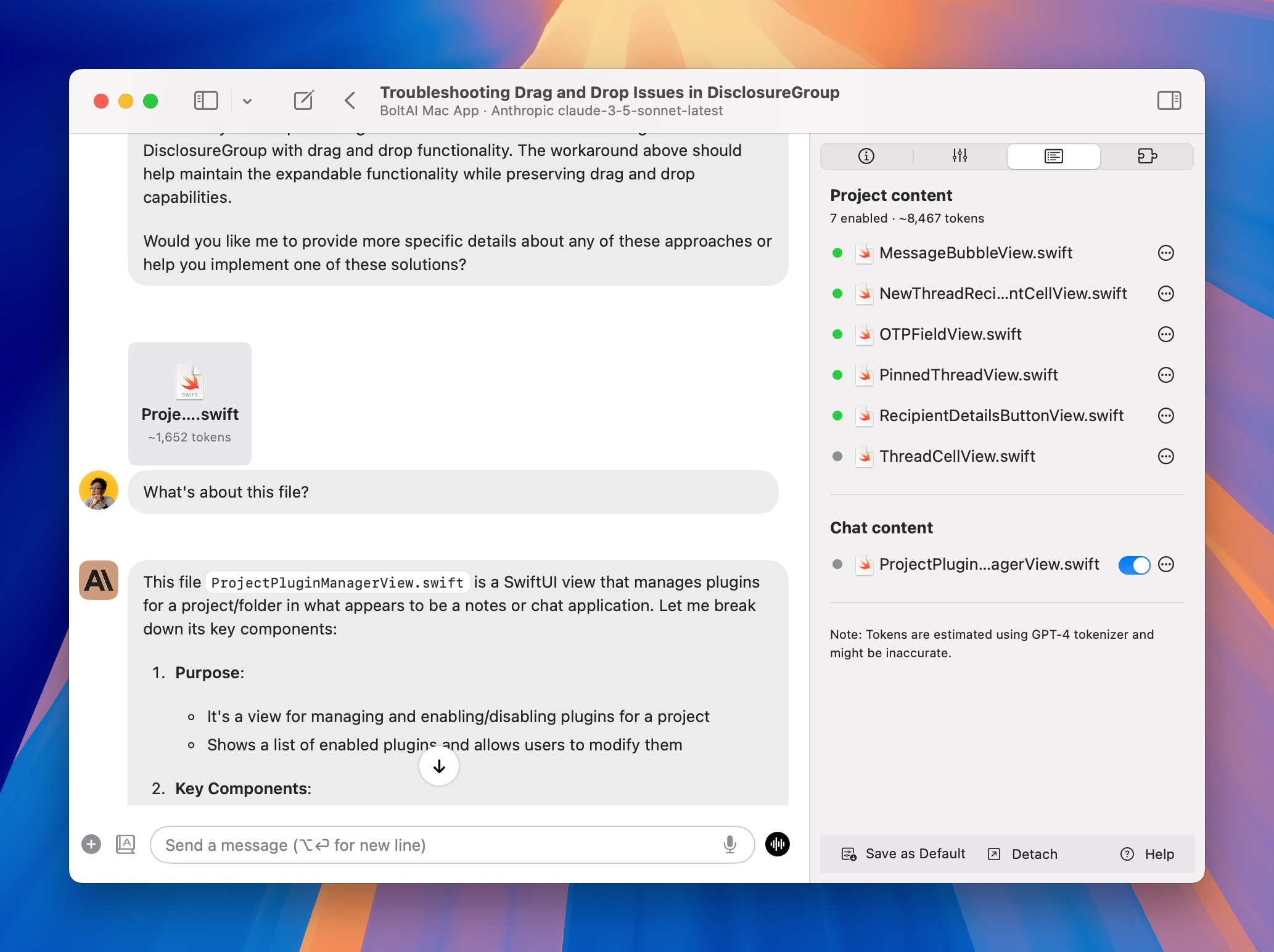 Project content & chat content on BoltAI
