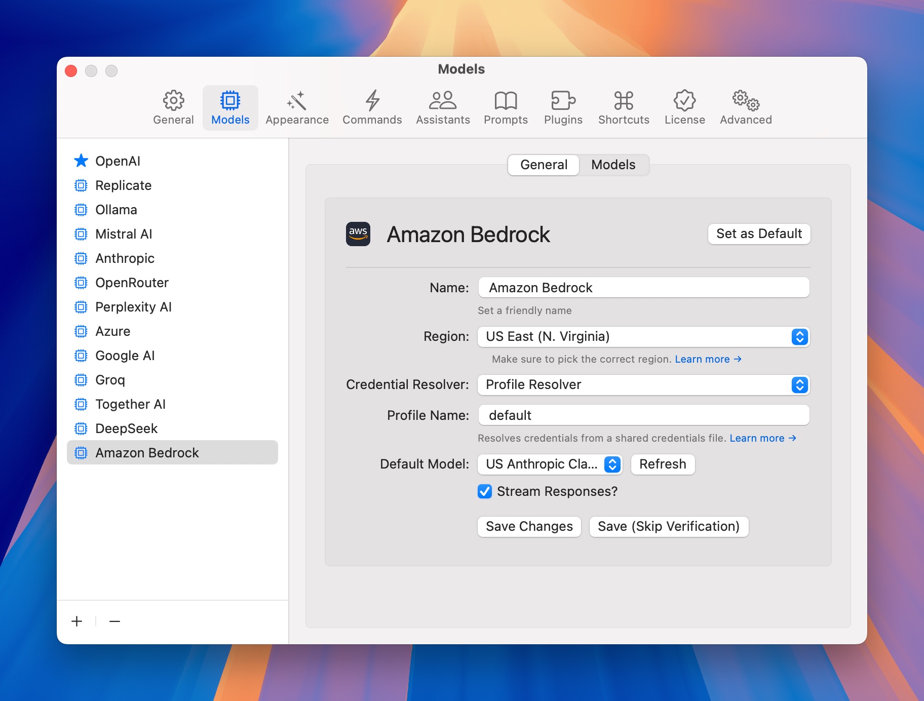 - Better support for Amazon Bedrock: setting