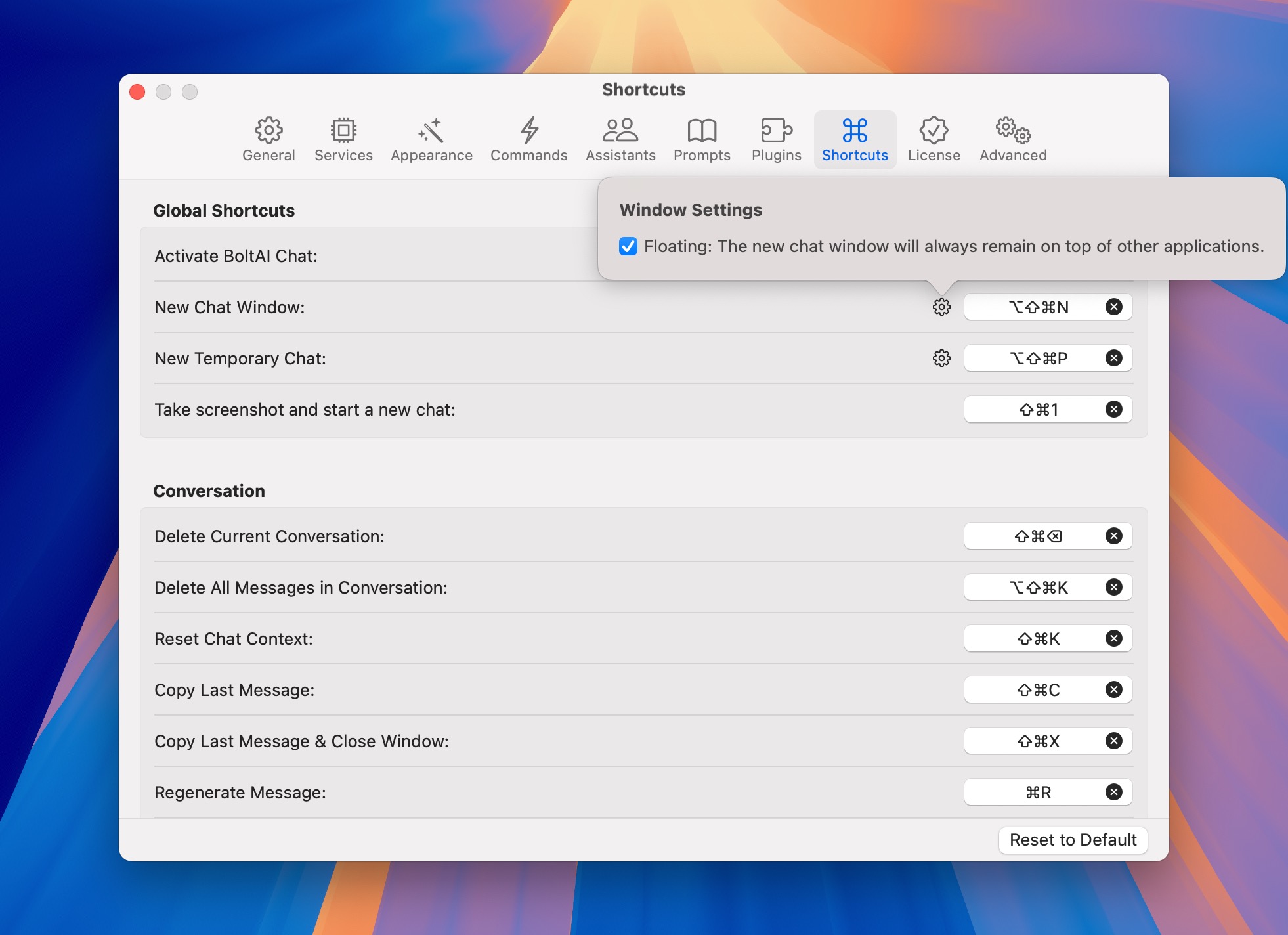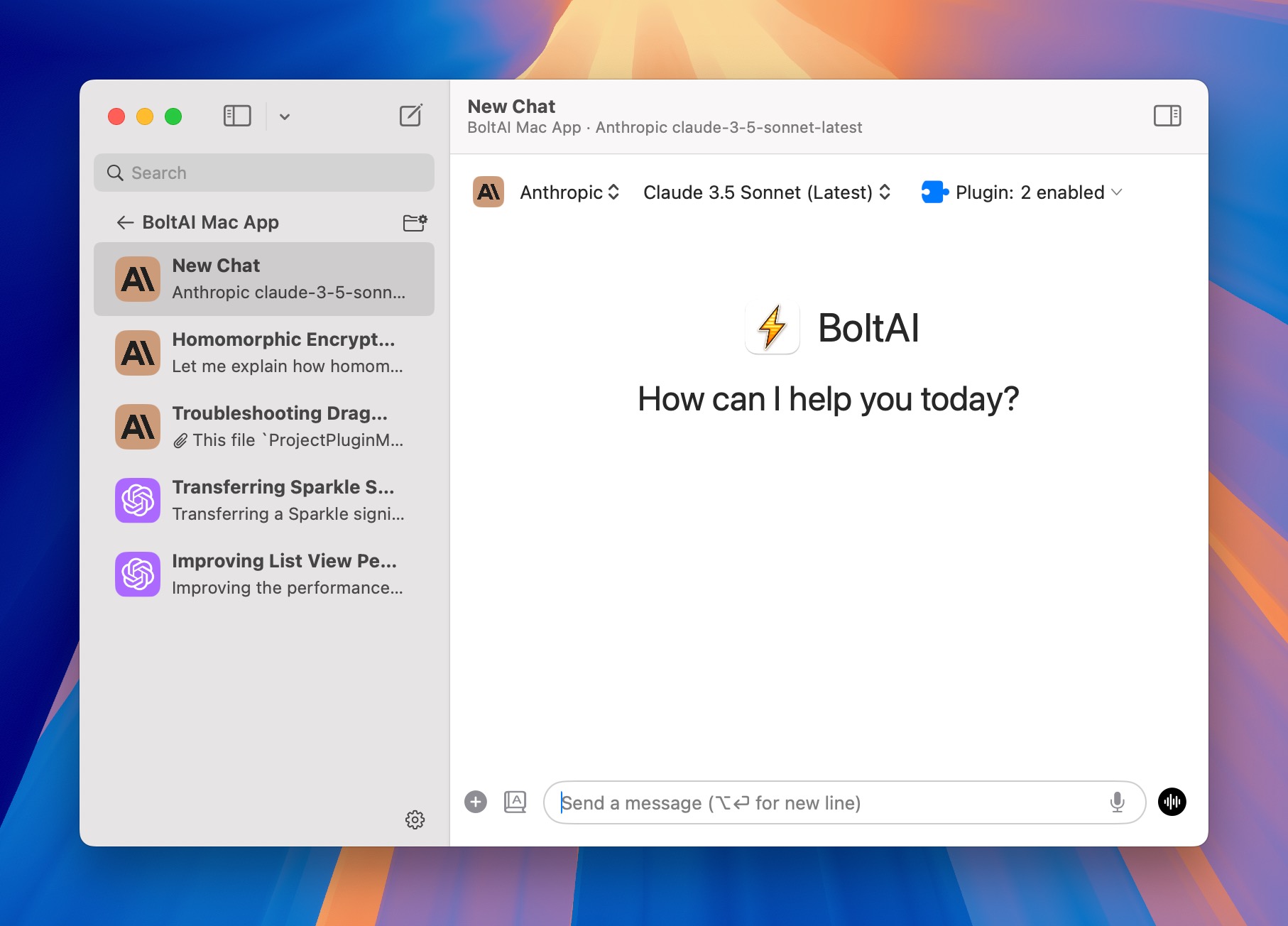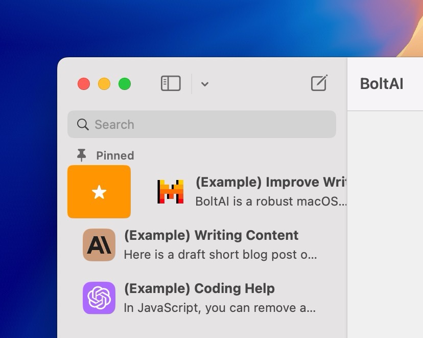 Many BoltAI's performance & stability issues come from the sidebar. In this release, I reimplemented the sidebar and it works a lot better (10x better). It's not an exaggeration. I tested with a few thousands chats and see no performance issues at all. Previously, BoltAI would struggle to render just a few hundreds chats.