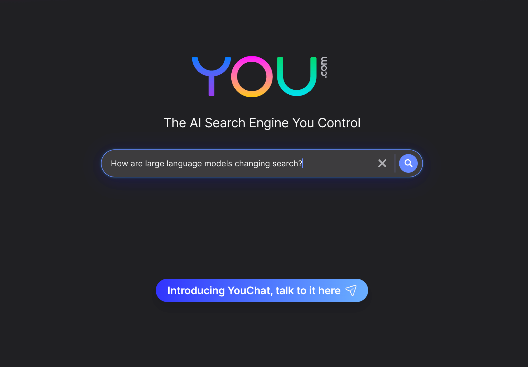YouChat is an AI-powered search assistant developed by You.com, designed to provide users with conversational answers, up-to-date information, and citations from verified sources. It integrates advanced language models to deliver accurate and contextually relevant responses, enhancing the search experience by combining traditional search results with AI-driven insights.