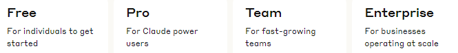 - Enterprise: Custom Pricing - For large-scale businesses. Includes all Team features plus an expanded context window, Single Sign-On (SSO), fine-grained permissioning, SCIM, audit logs, and data source integrations.