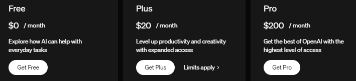 - ChatGPT Plus: $20/month, includes GPT-4 and faster response times.